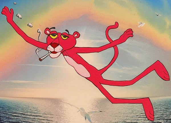 Paulchen Panther auf Helgoland ... Dieses mixed media ist im Rahmen einer Serie exklusiv für die Ausstellung Annas Art Affair auf Helgoland entstanden.