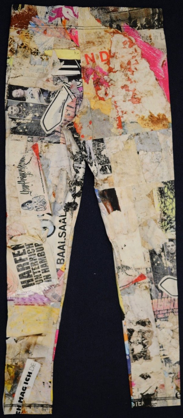 Verzweiflung Liebeskranker, Termine, politische Botschaften. Friederike Lydia Ahrens konserviert diese Poesie der Strasse in ihren Collagen. Zsa bringt die Kunst per Digitaldruck auf Stoff und die hochwertigen Kleidungsstücke werden in ihrer Werkstatt Formschoen gefertigt. Sie tragen also nicht nur ein Stück "Wandgeschichte". sondern auch ein Kunstwerk.