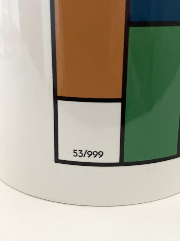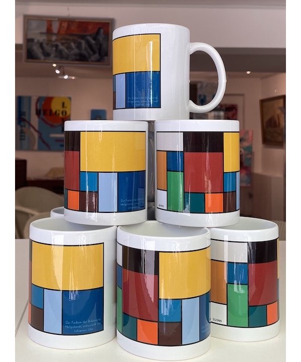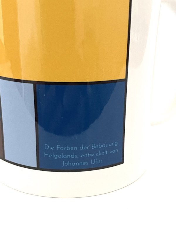 Kaffeebecher in den Farben der Bebauung Helgolands. Der Hamburger Künstler Johannes Ufer hatte die Farbpalette entwickelt.