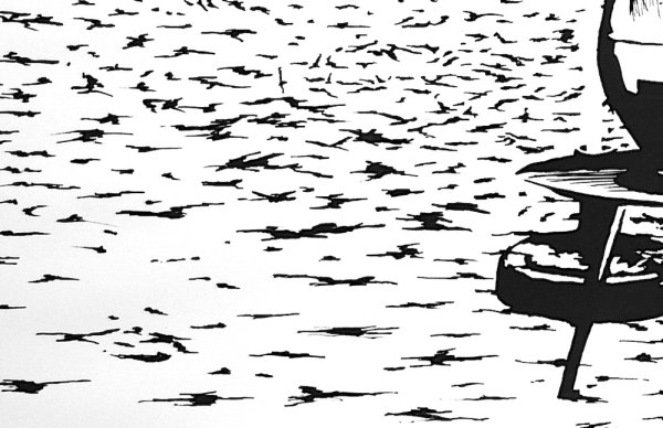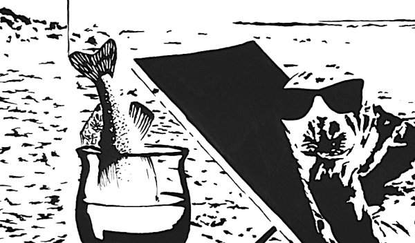 Schwarz, weiß – und sehr entspannt: In „Robbe am Strand“ bringt der Künstler NOSE die Essenz eines Sommertags auf Helgoland auf den Punkt. Eine Seehunddame liegt auf der Sonnenliege, genießt ihren Drink im Schatten des Schirms – mit Sonnenbrille, Haltung und einer Prise Ironie. Der starke Kontrast, die klaren Formen und der trockene Humor machen dieses Motiv zu einem markanten Beispiel für NOSEs reduzierten Stil. Ein Bild, das auffällt – leise, lakonisch und voller Inselflair.